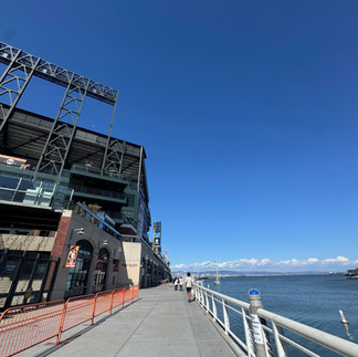 We were instructed to get to Oracle Park at 4:30pm, even though the game wasn't supposed to start until 6:45pm. We were escorted by NBC reps, Kira and Meshti, as well as the Account Executive, Jesse Flores. A woman named Rebecca from Provident Credit Union was also there, since Provident is a sponsor for the contest. We got to go on the field with special passes while the players warmed up and my dad did his interview.
