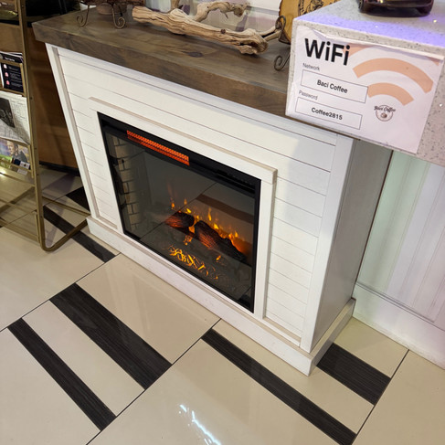 The lighting was a bit dark and moody for an early morning coffee, so if you're looking for a brighter vibe, I'd try to sit by the window or outside. Apparently there is also a speakeasy in the space next to Baci, which was a fun surprise. I'm not sure if it is a bar speakeasy, or just a fun place to sit in secret. At the Baci counter, they had a lot of items on the menu, and even more to offer on their digital menu. I kept it simple and ordered a medium, "Matcha Honey Moon," which was just an iced matcha latte with honey. I thought it was cute they had an electric fireplace and wonder how strong their WiFi connection is.