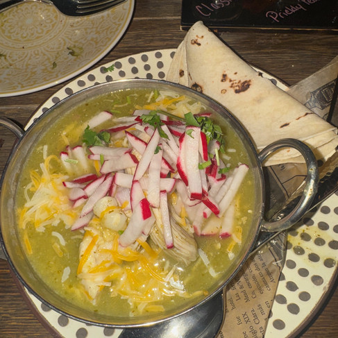 I got a great margarita flight at Alma, and we shared some great blueberry cornbread, rice and beans, and shrimp ceviche. Despite the 101°F temperature, I was weird and ordered pozole. Not sure why I thought HOT SOUP was a good idea, but I don't regret it. It was delicious.