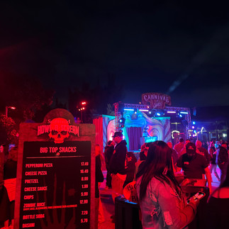 We didn't go through any of the haunted houses, mainly due to the insane lines, but also because the thought of breathing in more fake fog was not appealing. I am perfectly content watching the YouTube reviewers' body cams of the haunted houses and breathing air that doesn't burn my throat. There were a bunch of bars and food vendors with special spooky offerings, but we didn't get anything.