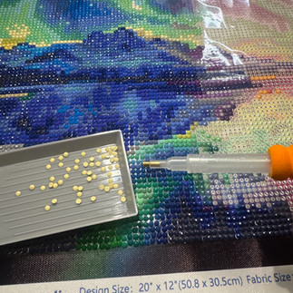 In other news, my boyfriend got me a Diamond Dotz diamond painting kit for Valentine's Day and its been a fun new hobby! Even after a few hours, I'm barely halfway through the canvas, so it is pretty slow progress, but its relaxing and easy. You pick up small little resin rhinestones AKA "diamonds" and place them on a sticky canvas. The design I'm working on is an aurora borealis.